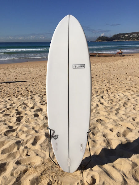 The Island Atom Surfboard has a single concave the length of the board. This gives you great water flow equating to high speed. Construction is of PU. This means the board is made of traditional foam, so it sits more in the wave not on it. This means you get a feeling of control and connection with the wave not often found in epoxy EPS boards. High tech materials are used in the construction included Innegra, a light weight super strong glass to give extra strength to the tail area where your foot and knees press. Extra glass is also used around the fin boxes for great durability. The Island Atom Surfboard is a great all round performer.